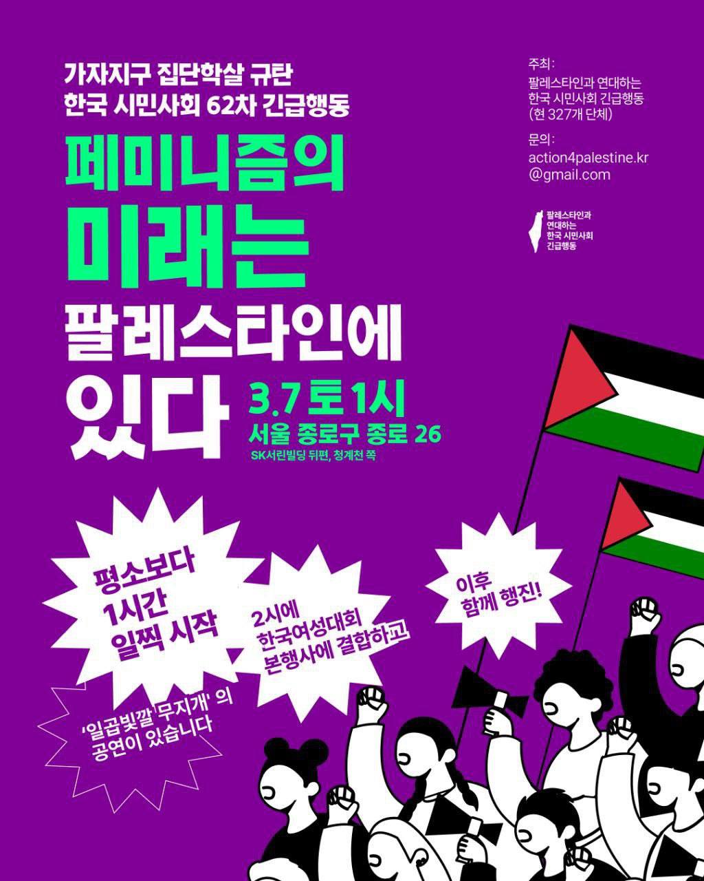 🗣 <여성의 날 팔레스타인 연대집회> ‘페미니즘의 미래는 팔레스타인에 있다’에서 재한 이란인 시아바시 사파리 교수의 이란 공격 규탄 발언이 있을 예정입니다.