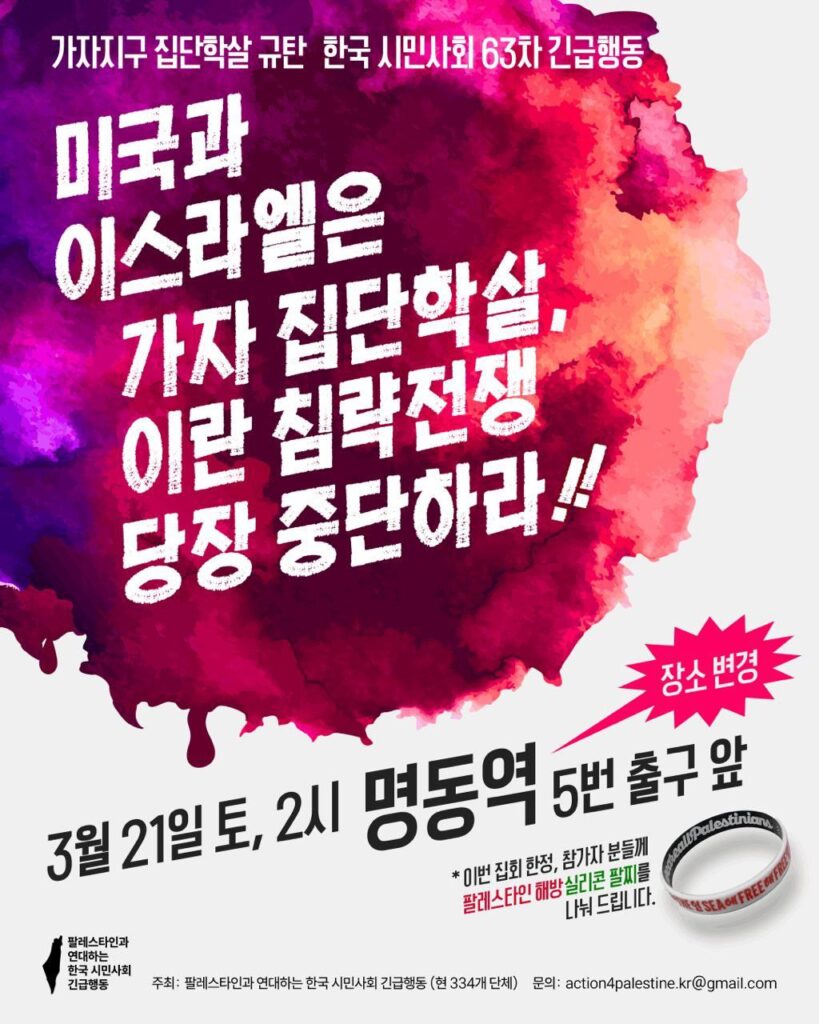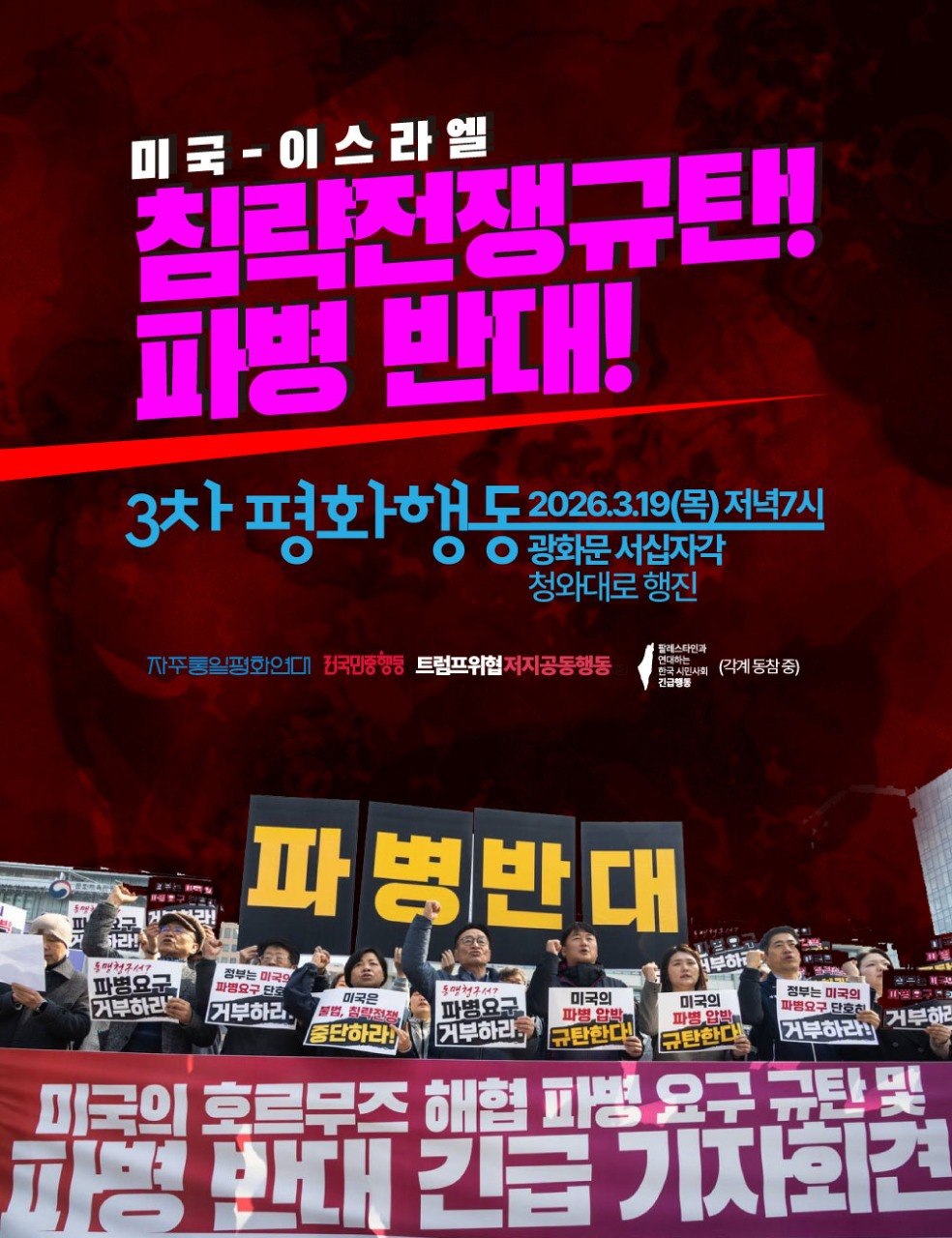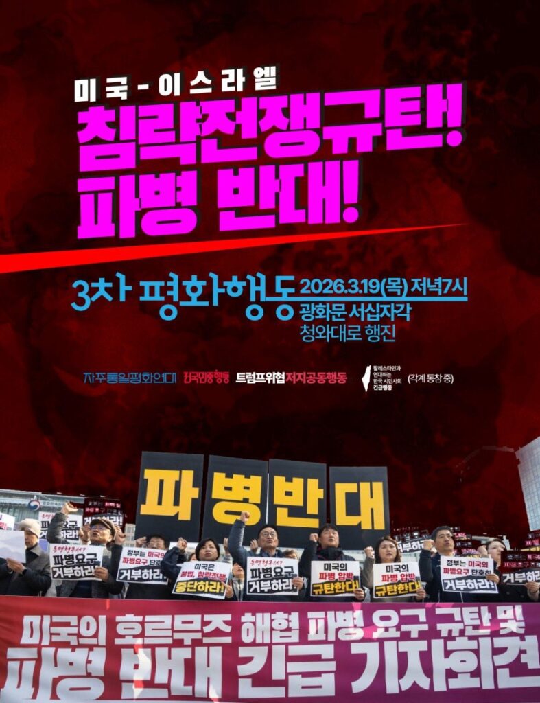‼️미국-이스라엘 침략 전쟁 규탄! 파병 반대! 3차 평화행동‼️
