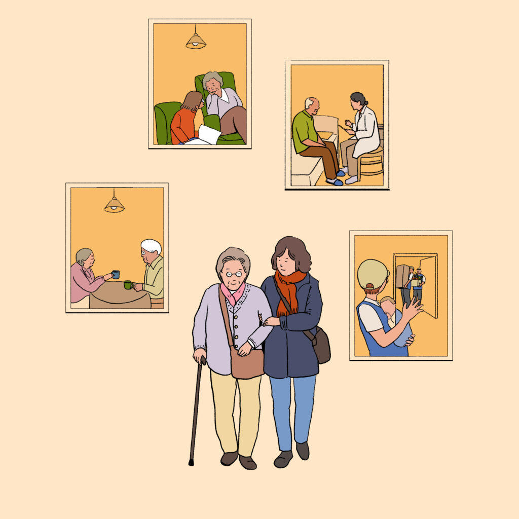 단순히 서비스를 연계하고 재배치 하는 것 이상으로 무엇을 할 수 있을지 상상하기는 쉽지 않다. 의료와 복지, 요양 서비스 모두가 처음부터 분절적으로 설계되고 운영되어온 탓에, 사람을 중심에 두는 서비스는 경험해본 적이 드물기 때문이다. 다만, 완벽하지 않아도 단편적 사례들을 참고해볼 수는 있다. 이를테면 의료기관이 없는 마을에서 보건진료소는 일종의 통합돌봄을 수행하고 있었다. 지역 주민들을 대상으로 건강관리 프로그램도 진행하고, 간단한 진료와 처방을 하면서, 전자기기에 익숙하지 않은 노인의 휴대전화 세팅을 바꿔주거나, 코로나19 유행 때는 장을 봐주는 경우도 있었다(관련기사 바로가기).